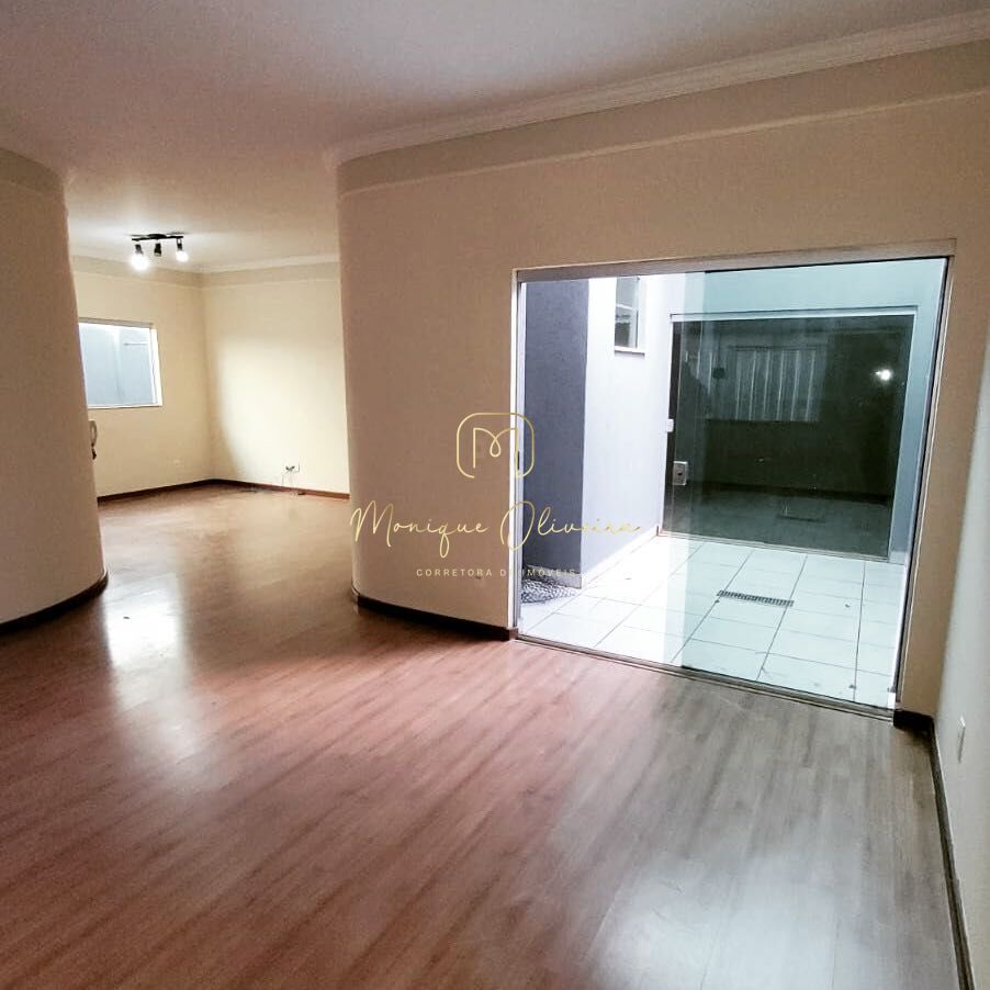 A casa conta com 3 dormitórios, sendo 1 suíte com closet, todos com armários planejados. Possui ampla sala de estar integrada à sala de jantar, banheiro social e lavabo.